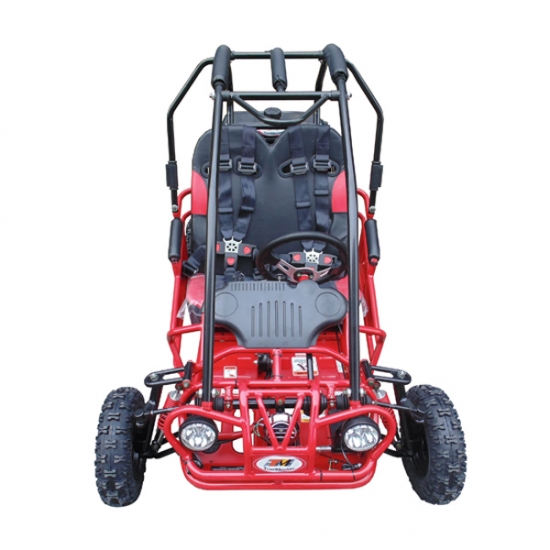 For safety, the G50-4 mini gas go karts with reverse comes with LED headlights for maximum visibility, 5-point seat harnesses and a speed governor and remote control start/stop so parents stay in total control at all times.